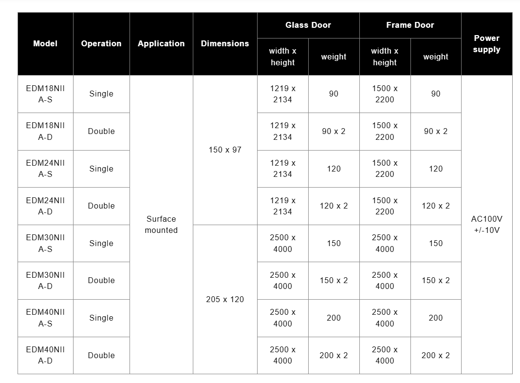 每扇門承重可達 200 公斤(型號:EDM-40NII)